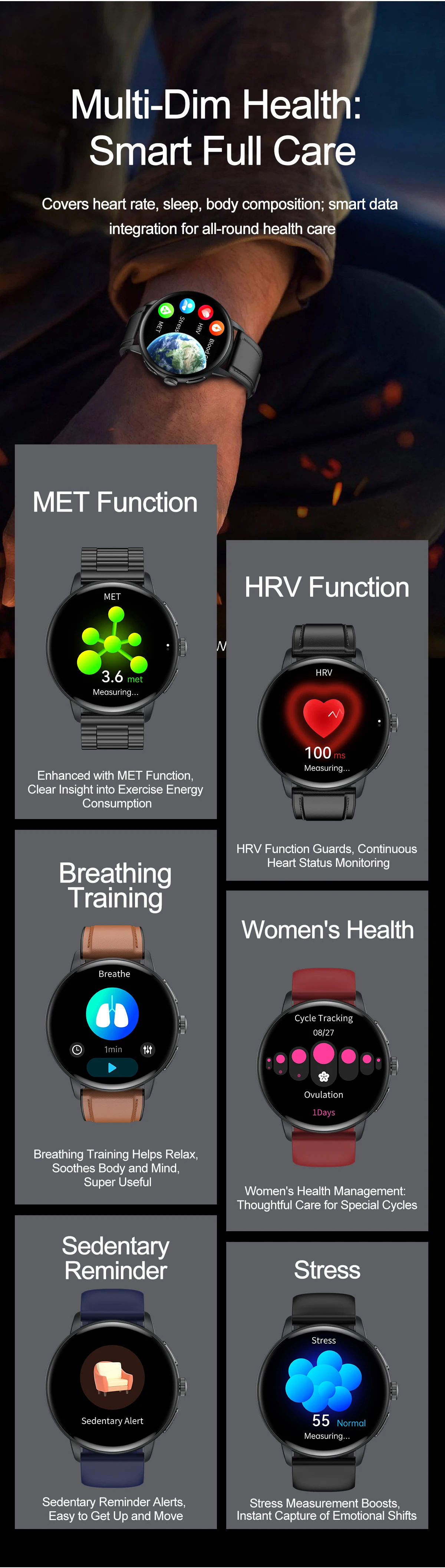 Metrics measured: Heart Rate Monitor,Women's Health Monitoring,Other,Blood Oxygen Monitor,Sleep Monitor,Blood Pressure Monitor,Body Temperature Monitor,Stress Monitor