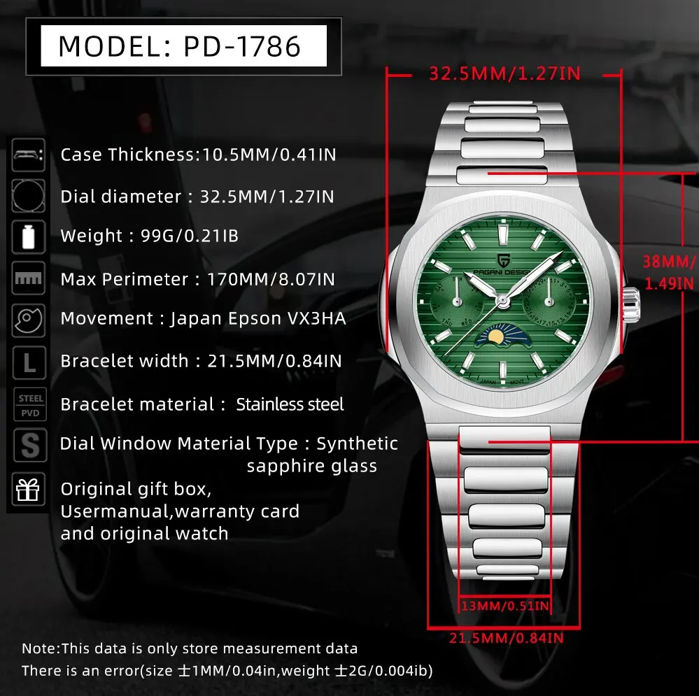 Feature: Luminous,Moon Phase,Water-Resistance,Week Display,Luminous Hands