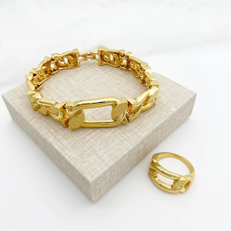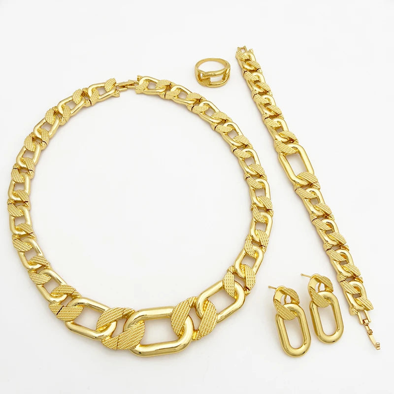 keyword: Dubai Gold Color Jewelry Set For Women Luxury Quality 24K Gold Plated Necklace Earrings Ring Bracelet Classic Design 4PCS
